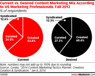 While new, brand-created content currently makes up nearly one-third of the overall content marketing mix, respondents were hoping to tip that balance slightly closer to the side of curation.