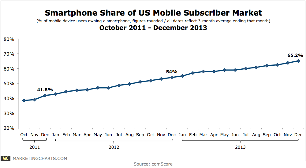 Smart phone penetration continues to grow, exceeding 65% of the US mobile subscriber market during the fourth quarter of 2013.