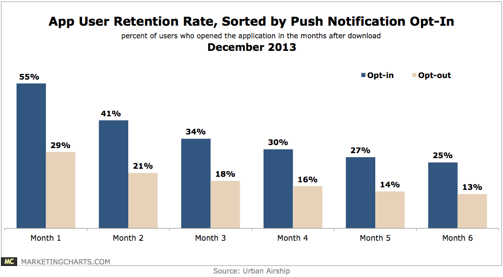 Read MoreApp User Retention Rate By Notification Opt-In, December 2013 [CHART]