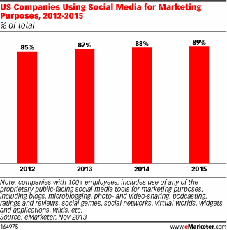 88% of US marketers will use social media for marketing purposes next year, up from 87% in 2013.