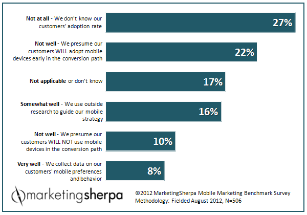 Mobile marketing may be a rapidly growing tactic, but marketers’ understanding of customer mobile adoption is still fairly immature when compared to other tactics.