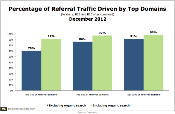 The majority of referral traffic to those websites is generated by just a fraction of the referring sites.