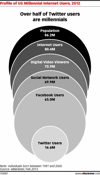 Millennials make up more than half of all US Twitter users, and will hover around that point for the next several years.