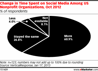 More than three out of five nonprofit organizations reported spending more time on social media than they did a year ago.
