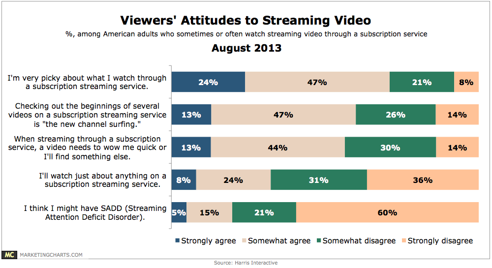 Read MoreViewers' Attitudes Toward Streaming Video, August 2013 [CHART]