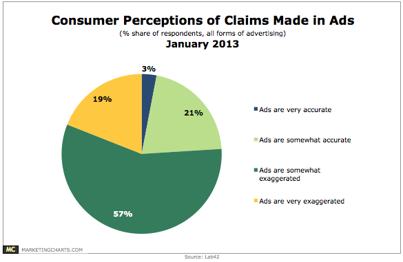 Just 3% of Americans believe that claims made in ads are very accurate, with far more (19%) believing them to be very exaggerated.